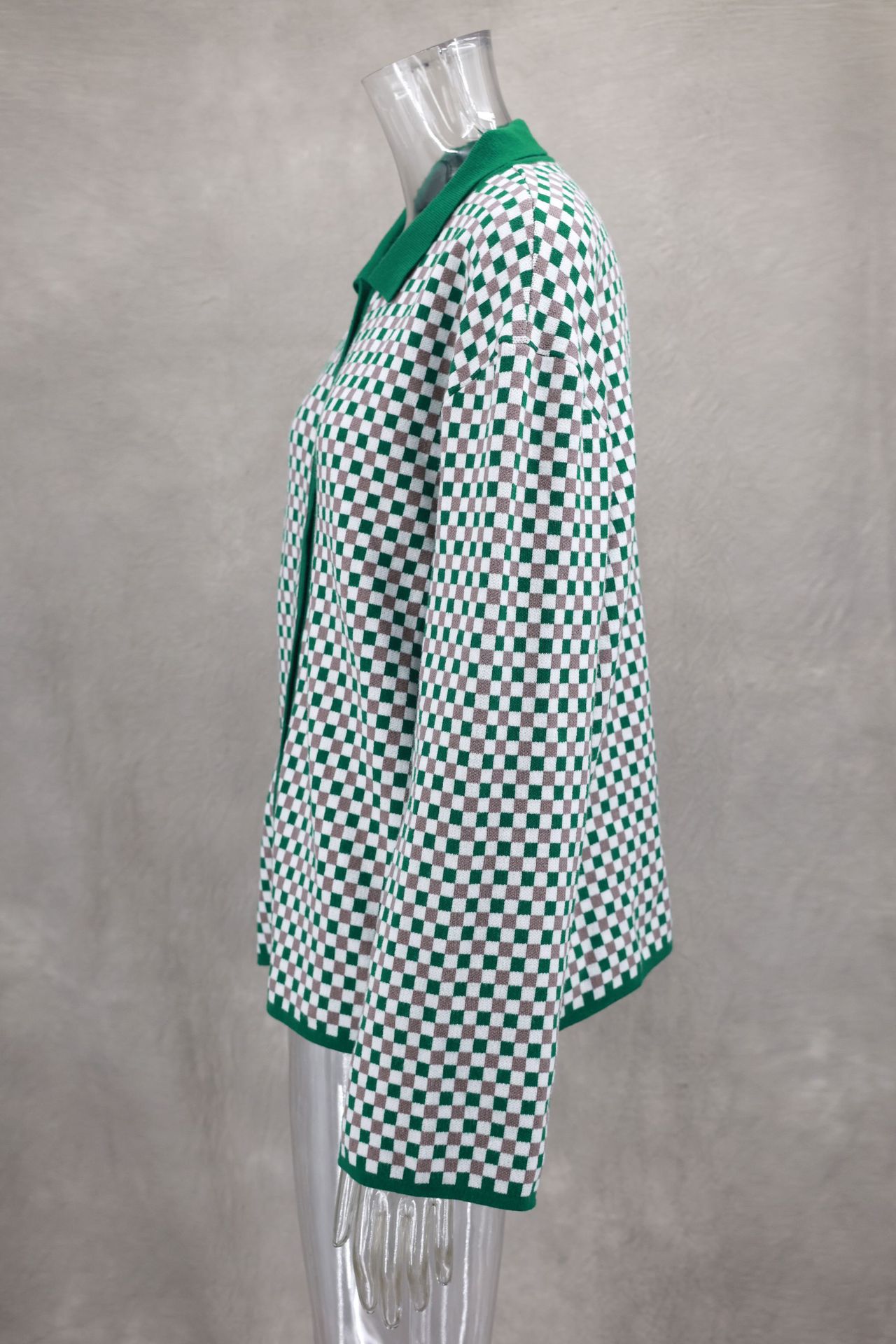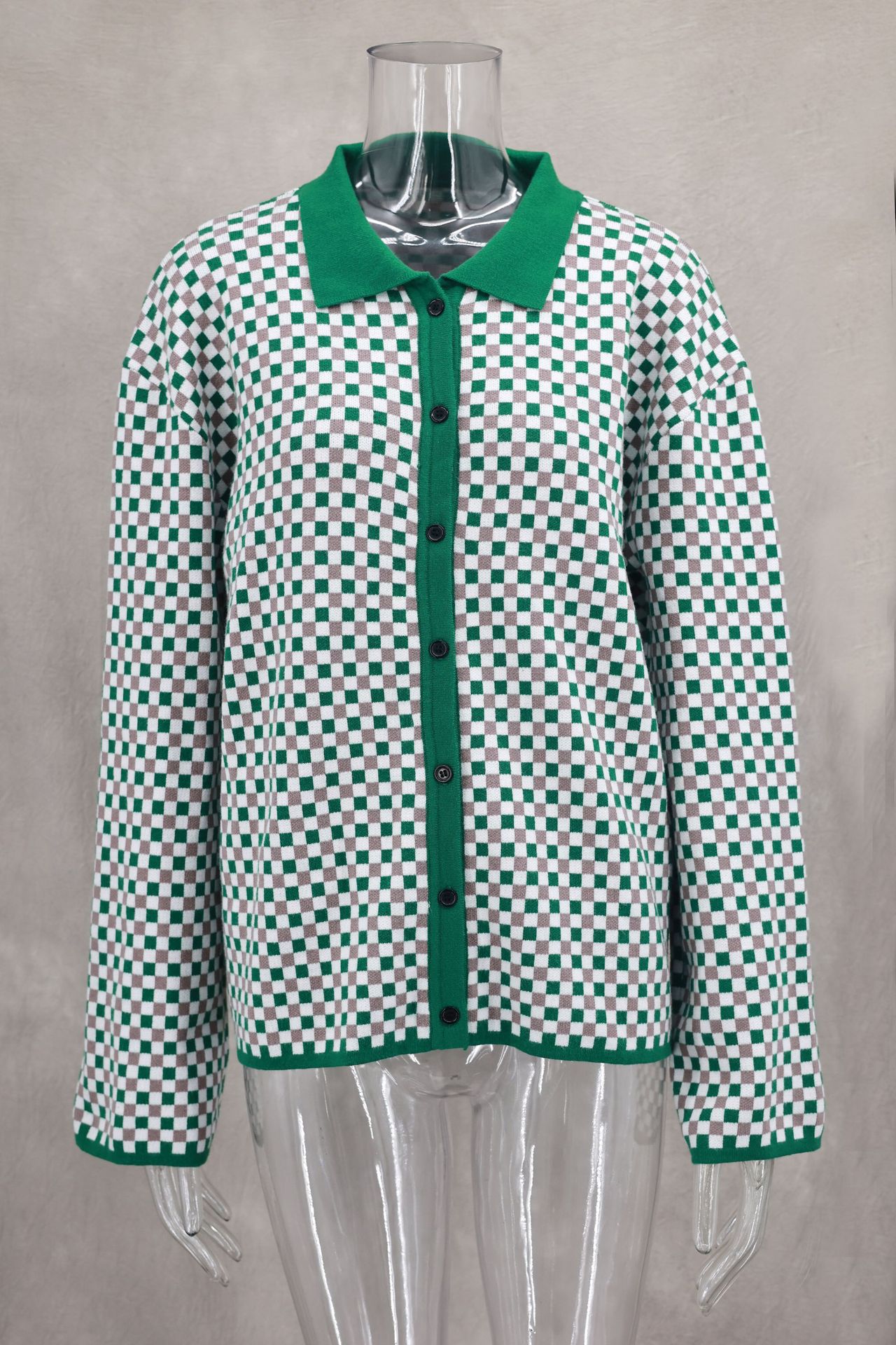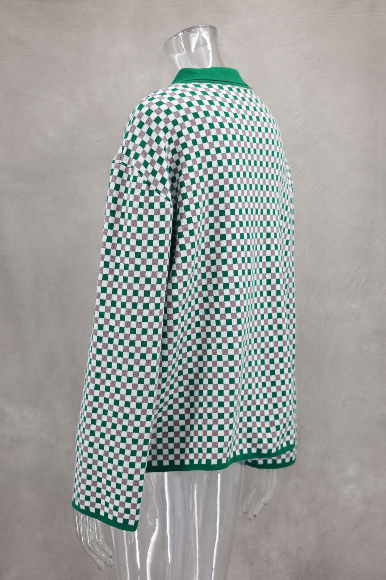 Fresh Sweet Color Matching Polo Collar Coat Cardigan Autumn Winter Women Clothing