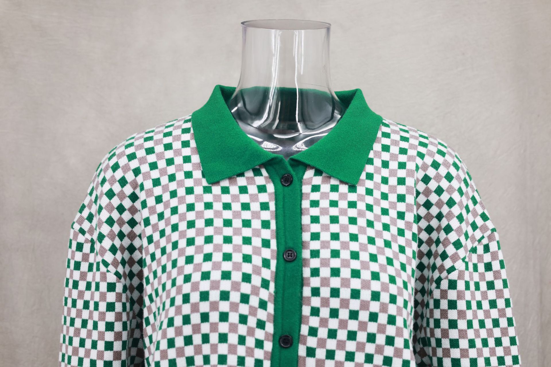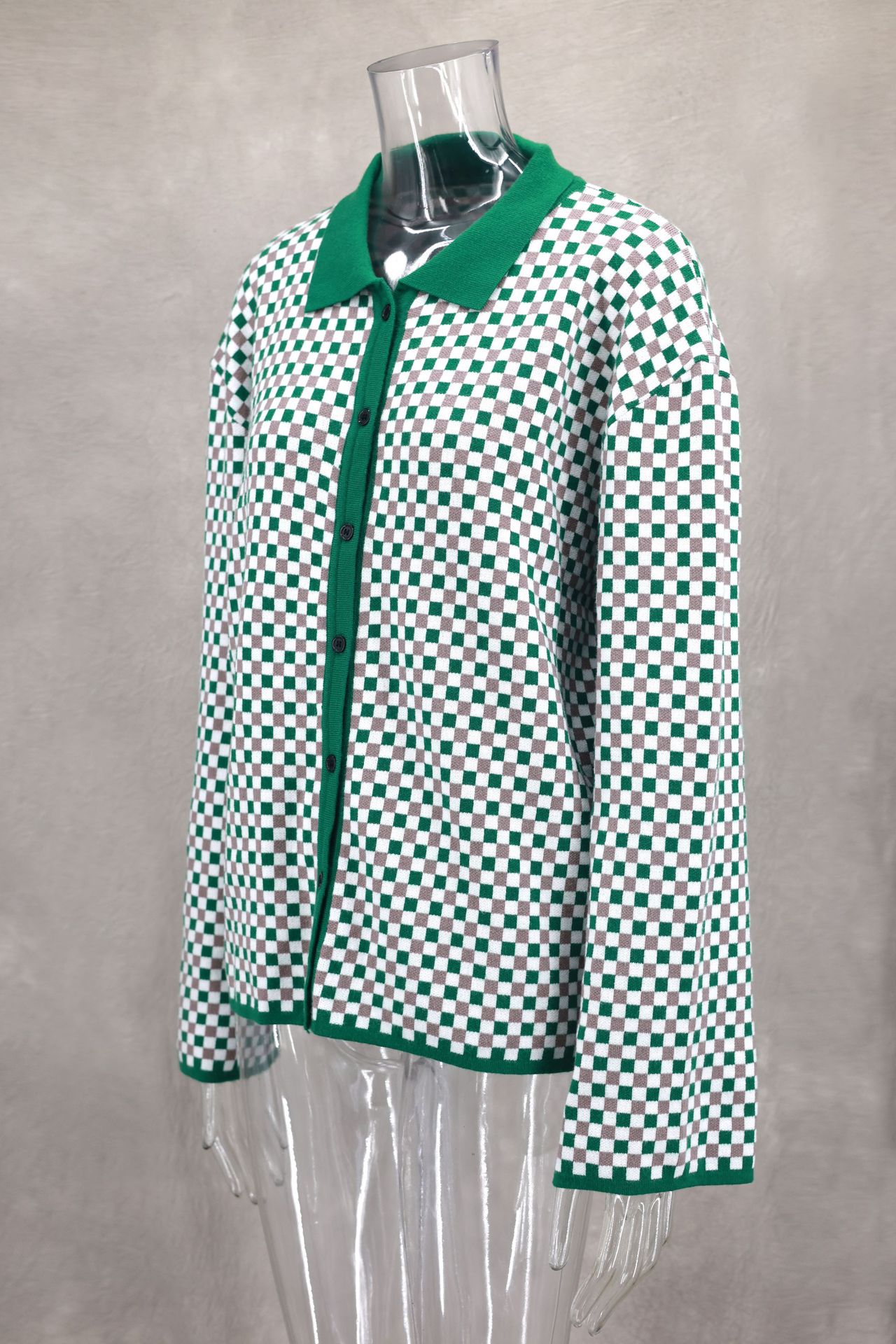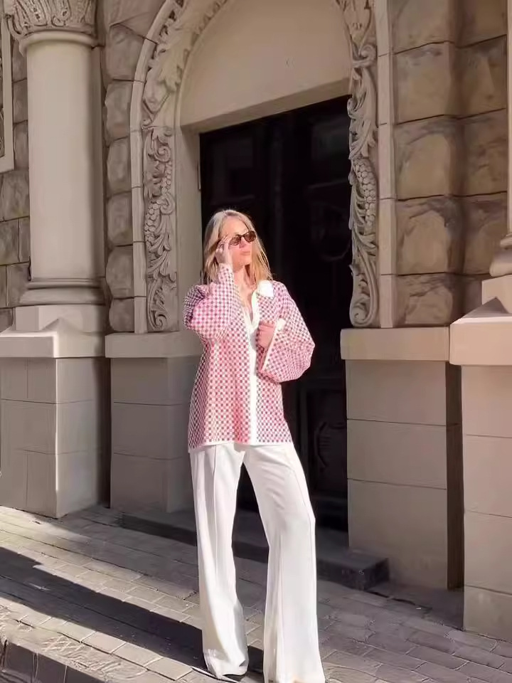 Fresh Sweet Color Matching Polo Collar Coat Cardigan Autumn Winter Women Clothing