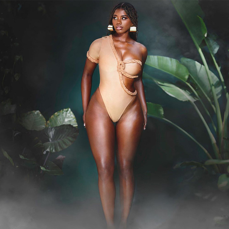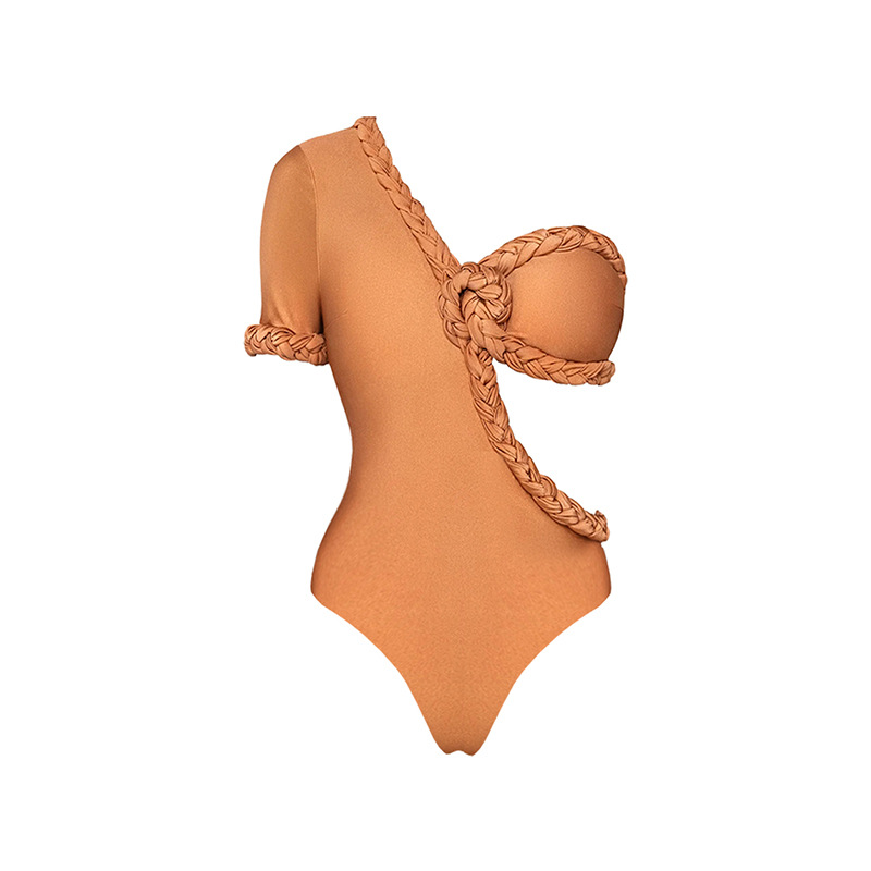 Solid color handmade woven rope jumpsuit for women's beach vacation swimwear
